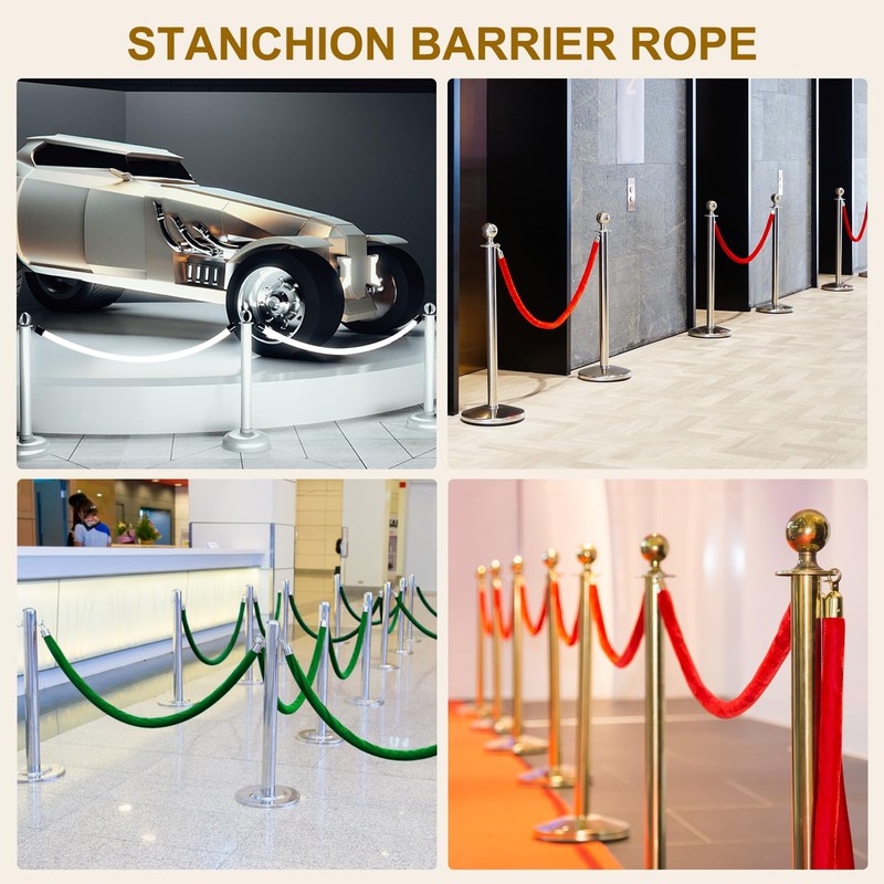 - These elegant ropes are made from soft flannel rope and metal buckle, strong and sturdy, resistant to wear and tear, making them suitable for heavy use in high-traffic areas. with attractive design, it provides a sense of luxury and refinement to the place. Also, Our stanchion rope can be easily adjusted to fit your specific needs by adding or removing segments as necessary.