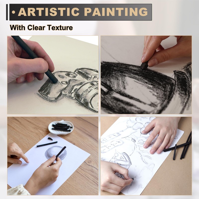 Easy to Use: The charcoal stick is smooth and delicate, ensuring a deep and rich black on paper, canvas, or textured surface.