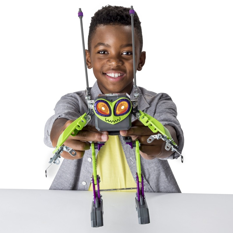 Now you can have your own robot friend with the Meccano Micronoid Switch. This robot kit comes with 139 pieces for building a small robot toy. Once you've got the battery-powered robot built, turn it on and start playing - with push button programming Micronoid can walk, turn, and smash through obstacles. There are three play modes, and you can program the robot to do different actions. In 8-Ball mode, ask the Micronoid a yes or no question, and the robot will respond with an answer, you might hear "Oh yeah!" or "No, no, no." In Dance mode, you can play music near the Micronoid to make the robot dance. If you leave the robot in this mode for too long, it will start dancing and playing its own music. And then in Autonomous mode, Socket has a mind of its own. The robot basically does whatever it wants, including moving around, whistling, laughing, passing gas, and more. If you've got another Micronoid nearby, (each sold separately), the two may start interacting with each other and dancing to a synchronized routine. You can also build custom walking and turning sequences for the robot by pressing the record button on top of its head and then pushing the arrow buttons in the sequence you want. You can also program the robot by twisting its head left or right. Then press the play button to make the robot perform your programmed sequence. If you speak to the robot while recording, it will record your voice and repeat what you say in its robot voice when the play button is pressed. Building the robot will certainly be fun for kids who are into construction toys and robotics, but they'll also like being able to interact with the robot after it's built. This toy robot has a silly personality that kids will like bringing out through the play, and they can even add to the silly sounds and phrases with the record feature. Micronoids are responsive to music and your voice, making it easy to play with and program. Micronoids make a great gift for kids ages 8 and up, who are into STEM and an alternative to more expensive programmable robots.