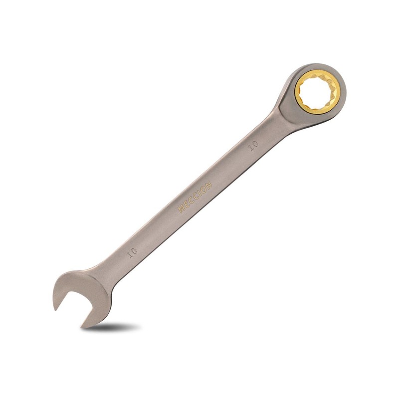 Meccion Combination Wrench 10mm Metric Open End Ratcheting Wrench - Industrial Grade Gear Spanner with Grey Nickle Plated