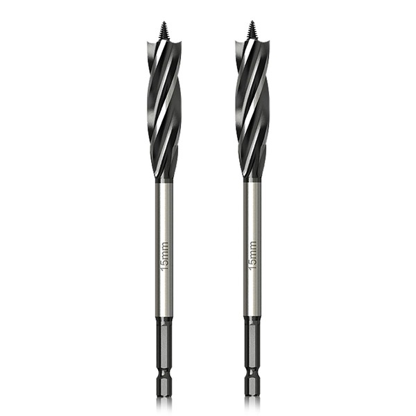 Meccion Wood Drill Bit 15mm x 165mm x 2pcs Professional Self Feed Speed Auger Woodworking Hole Drill Bit with 1/4 Inch Hex Shank