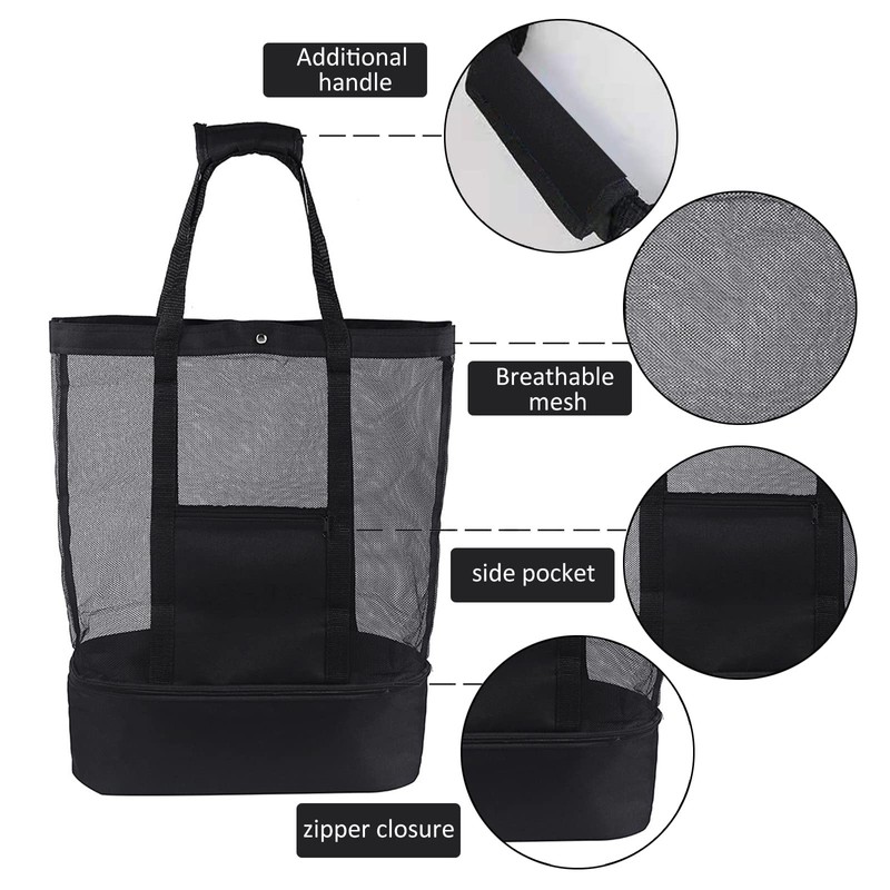- ☁ INSULATED COOLER BAG The nylon zippered tote bag features a cooler compartment keeps your food and drinks cold and fresh. We also offer you a small waterproof bag for your phone, keys, wallet and other items you can take with you or hang around your neck.
