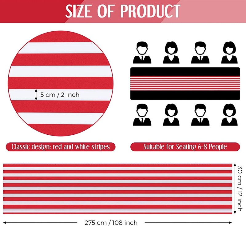 Mecerypt 6 Pieces Striped Table Runner Wedding Polyester Table Decor Red White Striped Design Tablecloth Decor 12 x 108 Inch