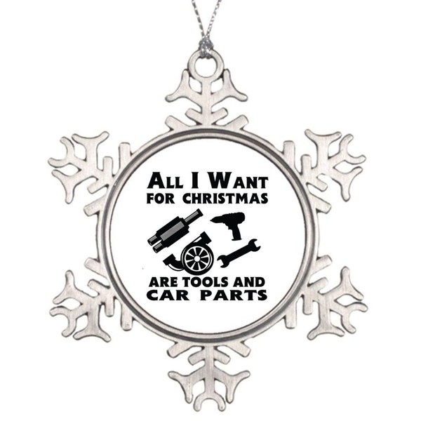 Mechanic Gift, All I Want Christmas is Tools and CAR Parts, Christmas Ornament for Mechanic, Mechanic Presents for Men, Metal Snowflake Ornament for Men Husband, Car Mechanic Garage Ornament Keepsake