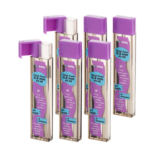 Mechanical 0.9 Lead Pencil & Eraser Refills, Black HB #2 Lead 0.5 Refill White Rubber Latex Free Eraser Refills for Pencil Tops, 2 Packs of 3 Tubes (20 Pieces of Lead & 6 Erasers per Tube) – By Enday