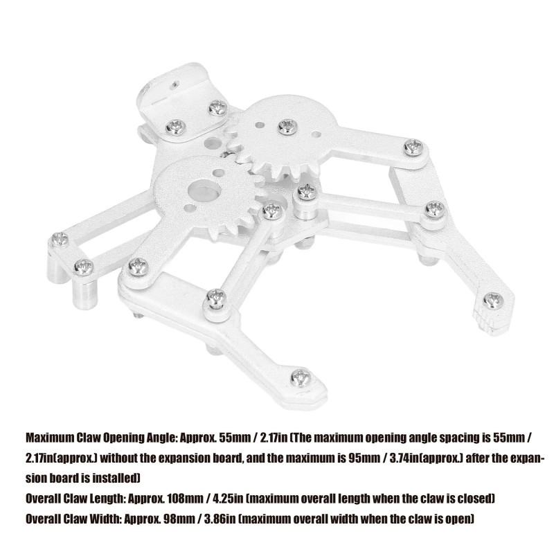 Maximum Claw Opening Angle: Approx. 55mm / 2.17in (The maximum opening angle spacing is 55mm / 2.17in(approx.) without the expansion board, and the maximum is 95mm / 3.74in(approx.) after the expansion board is installed)