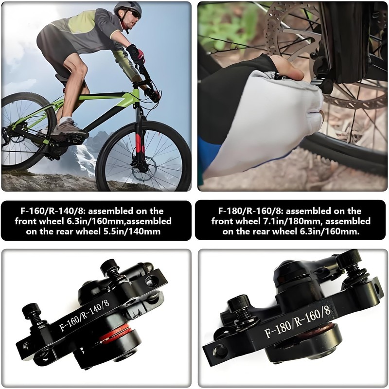 - Wide application: F-160/R-140/8: mounted on the front wheel 6.3in/160mm, mounted on the rear wheel 5.5in/140mm; F-180/R-160/8: mounted on the front wheel 7.1in/180mm, mounted on the rear wheel 6.3in/160mm to meet your different needs