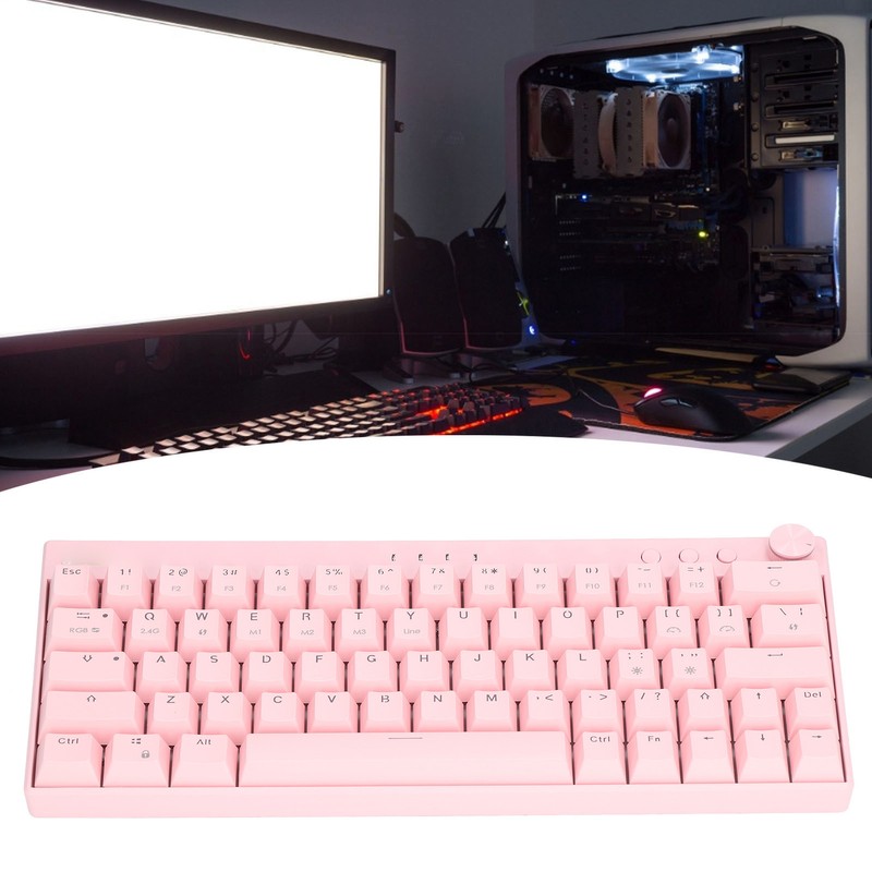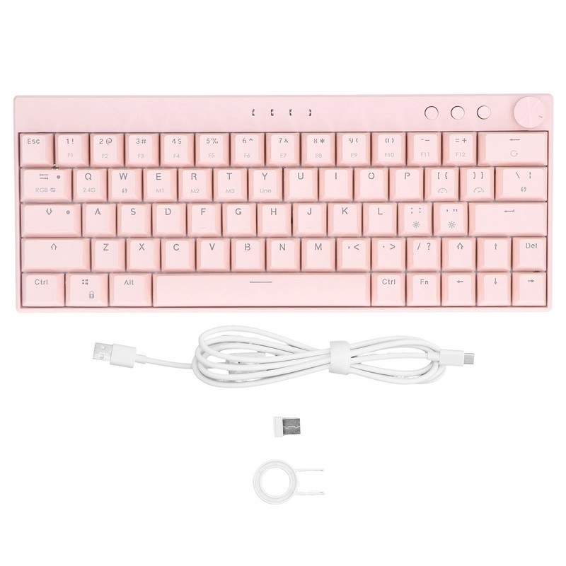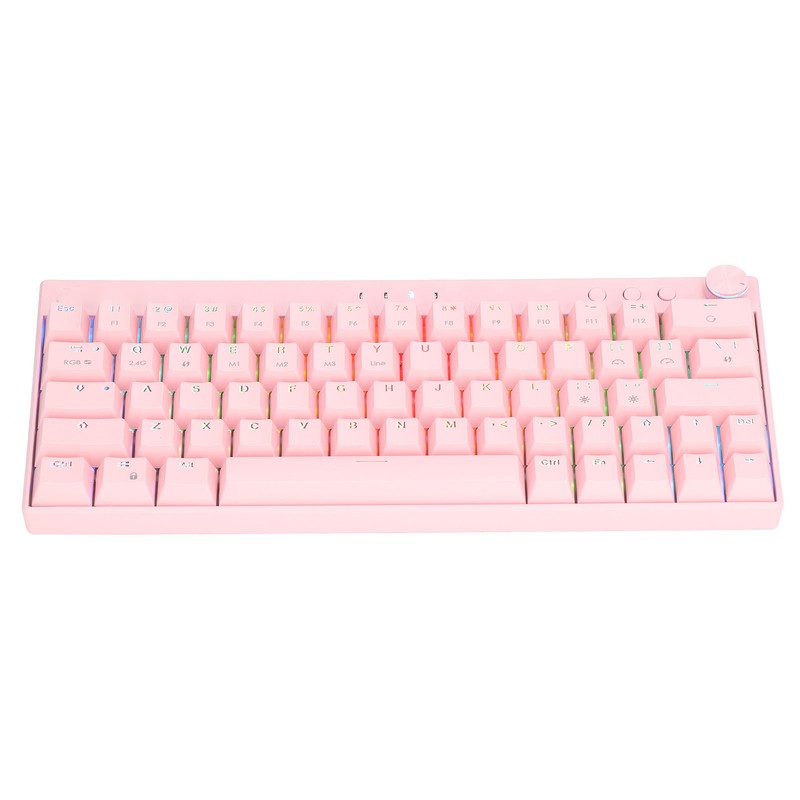 Mechanical Keyboard 64 Key RGB 3 Mode Ergonomic Layout Knob Design Wireless Pink Keyboard for IOS Brown Switch