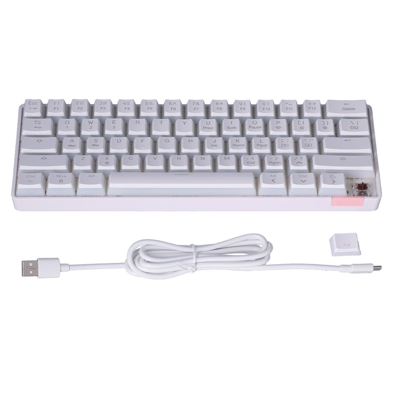 Mechanical Keyboard Long Battery Life Dual Mode Trigger Sensitive Pudding Keycap 61 Keys Gaming Keyboard for ComputerWhite Blue Switch