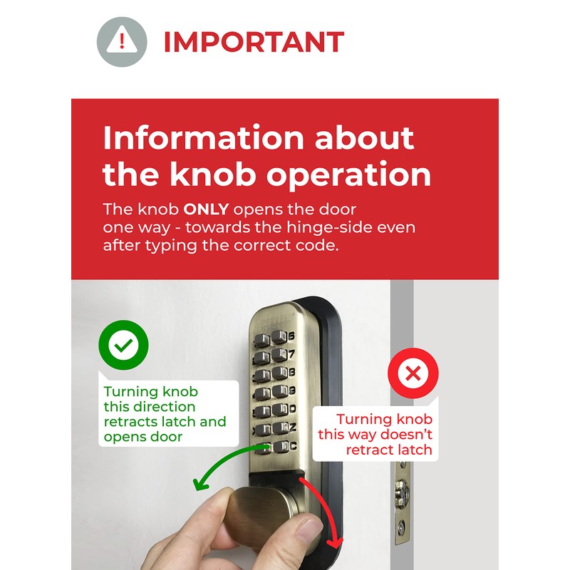 - No Batteries Needed - Reliable Mechanical Operation - Dual Keypads for 2-way Security - Intermediate to Advanced Installation Skill Level Required
