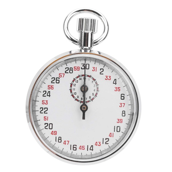 Mechanical Stopwatch, Sports Chronograph Running Timer Handheld 0.1s Scale 30s Pause Round Dial Stainless Steel with Hanging Loop for Sports Competitions Physics Teaching