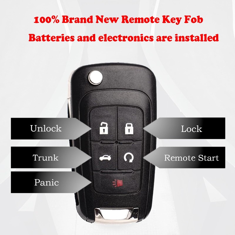 - COMPATIBLE WITH FCC ID: OHT01060512 / V2T01060512. For Full Compatible List, Please Check Our Product Description and Vehicle Fitment Tool. Each 5 Buttons Flip Key Fob Remote Start Control Replacement Comes with Batteries and Electronics, It Is Fully Installed and Is Pre-Tested to Ensure Quality. This Key Fob Replacement Is Compatible with Chevrolet Equinox Camaro 2010 2011 2012 2013 2014 2015 2016 2017 2018 2019 Cruze 2011-2016 Malibu 2014-2016 Impala 2014-2019 Sonic 2012-2017