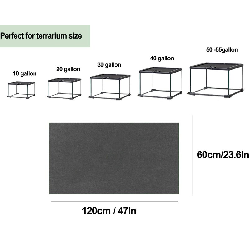 - 【Specification】 Size: 47" x 23.6"/120x60cm.Reptile mat is made of high density tech fiber material. It is suitable for 10-75gallon.