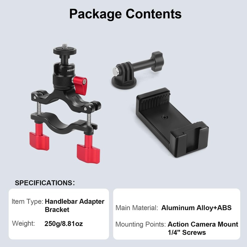 Mechrig Bicycle Motorcycle Handlebar Adapter Bracket Set for Insta360 X4/X3/X2/Ace Pro 2/Ace Pro/Ace for DJI Pocket 3 Osmo Action 5 Pro/4 3