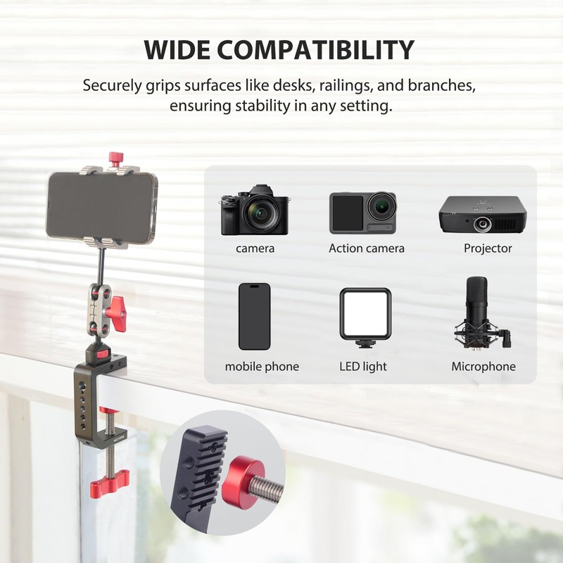 - Ideal for Multiple Applications: This C-Clamp is a versatile tool for photographers, videographers, and live streamers. Use it to secure cameras, lights, microphones, and more in studios, on location, or at home. It can be mounted virtually anywhere, making it an essential addition to any creator's toolkit