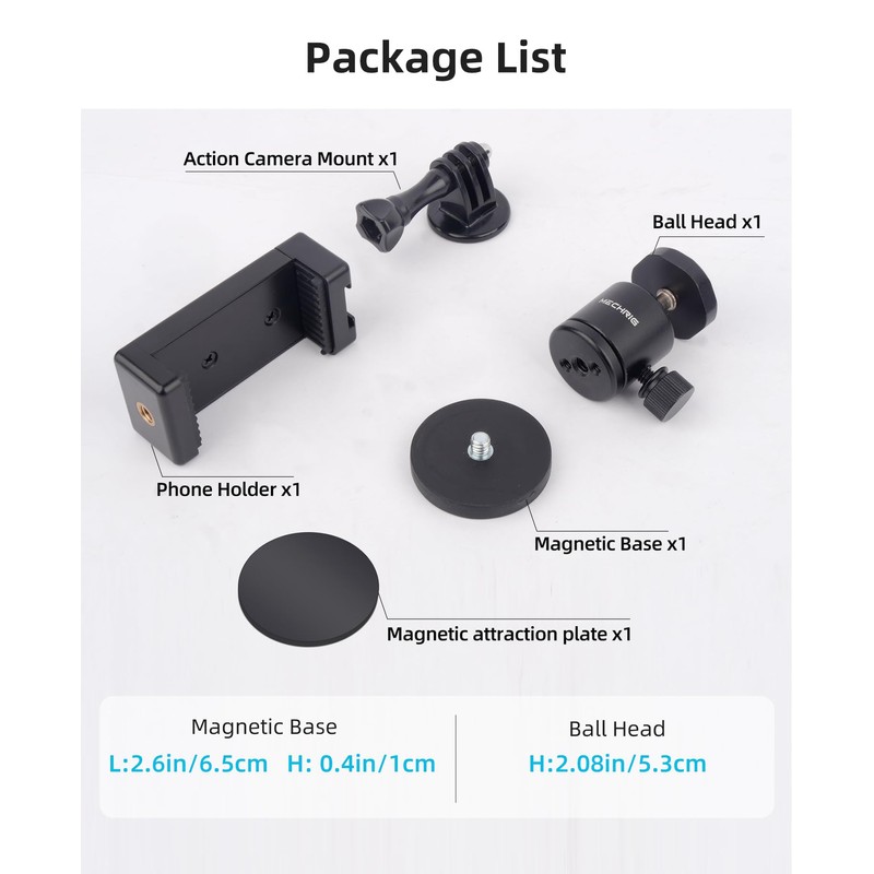 - 【Super Strong 6*N52 Magnets】 The magnetic phone holder features newly upgraded N52 magnets specifically designed for hands-free shooting. It securely attaches to any ferrous metal surface, making it an essential accessory for gyms, toolboxes, machinery, cars, trucks, boats, ATVs, forklifts, tractors, and more.
