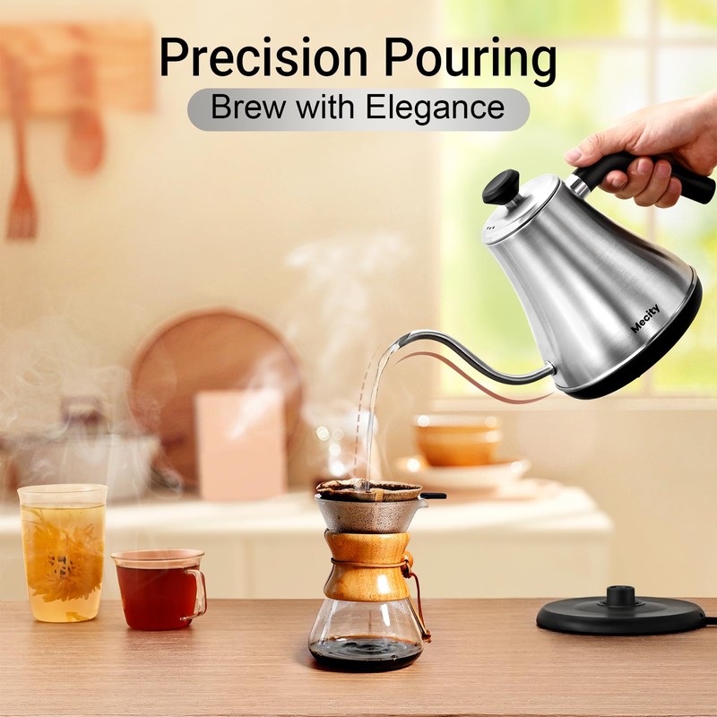 - Safe Boiling: Mecity gooseneck kettle has auto shut-off, dry-boil protection features, you can quickly and easily heat water for your favorite hot beverage without the hassle of a stovetop or traditional kettle.