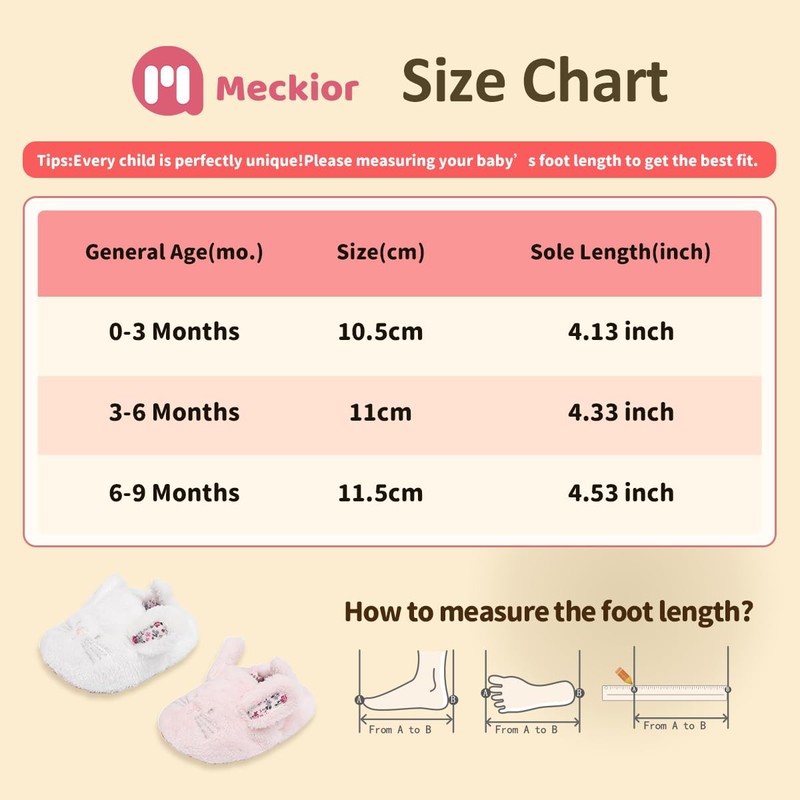 Size M: Recommended Age:6-12 Months; Heel to toe Length: 12.5.cm/4.78 inches
