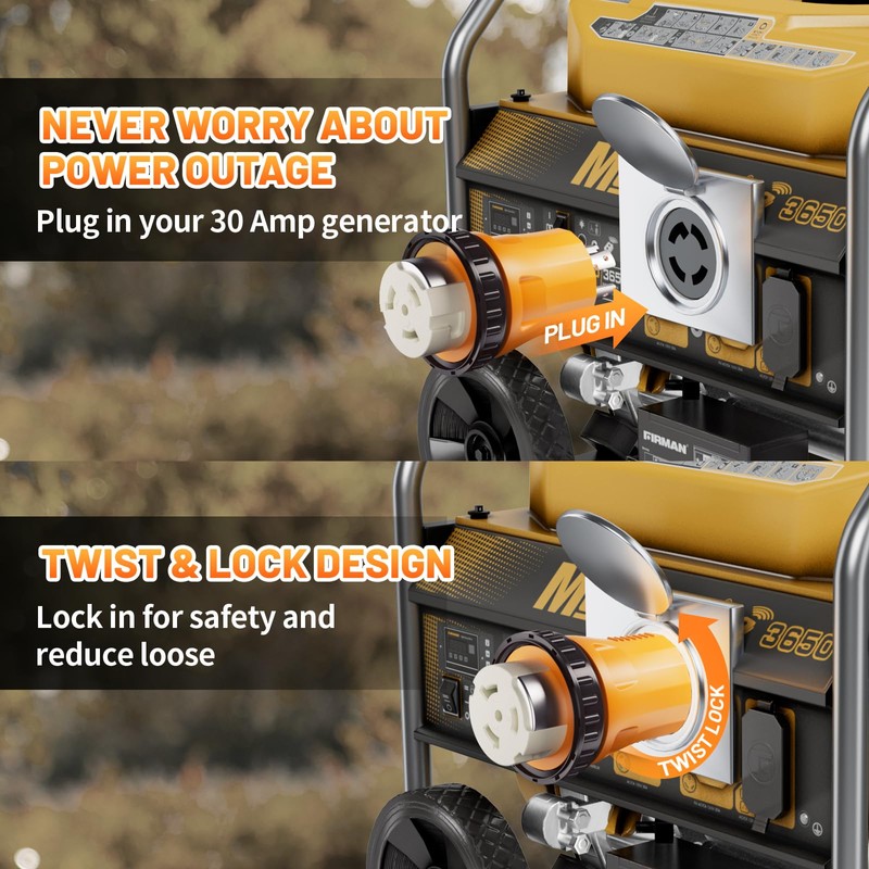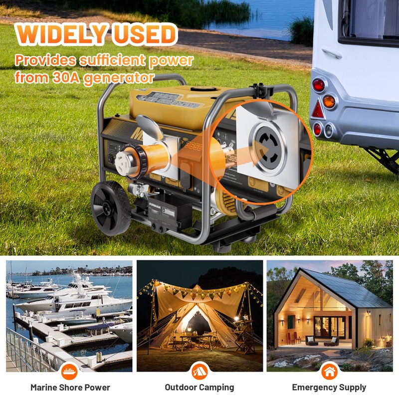 - Power RV/Marine/House with 30A Generator: - 30A 4 prong twist generator plug NEMA L14-30P(male) end to your 30A-ready generator output; Or connect twist lock SS2-50R (Female) end to your 50A RV power inlet or house's 50A power inlet box (SS2-50P/CS6375)