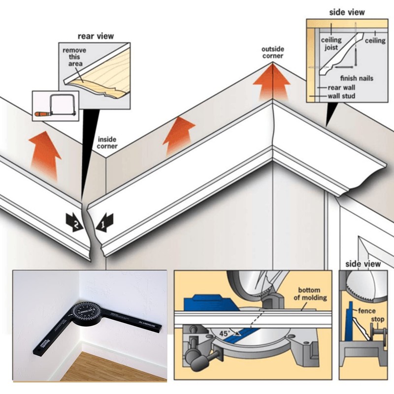 - 【Accurate & Durable Angle Finder】Crafted from CNC-machined Anodized Aluminum Alloy Steel, the protractor with accurate laser engraved scales. Reliable to measure accurate angles for crown molding and a variety of other carpentry applications.