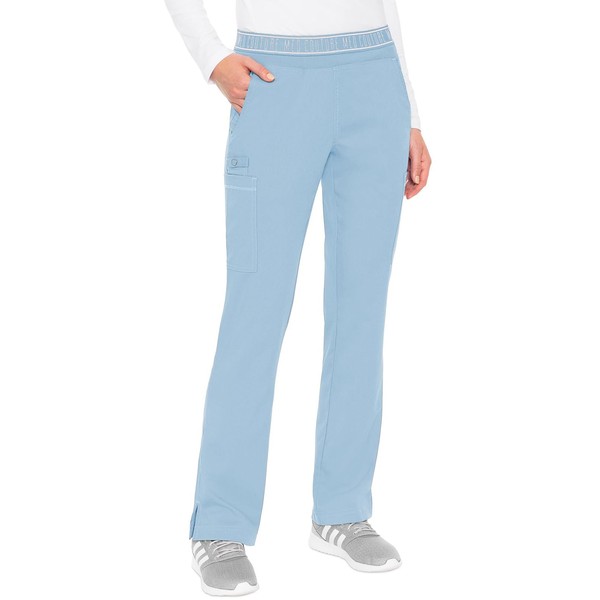 Med Couture Women's Yoga Pull-On Pant with 7 Pockets Ultra-Soft Rib-Knit Waistband and 2-Way Stretch Technology - MC7739P, L Petite, Periwinkle