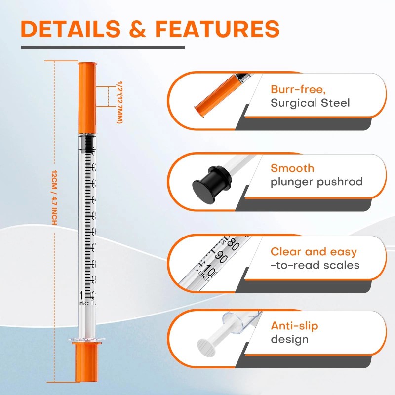 - 25 Per Box & Sterile Packaging: Each 30G 1ml 1/2"(12.7mm) syringe is sealed in a blister pack, and each syringe comes with a protective cap to ensure safety and sterility.