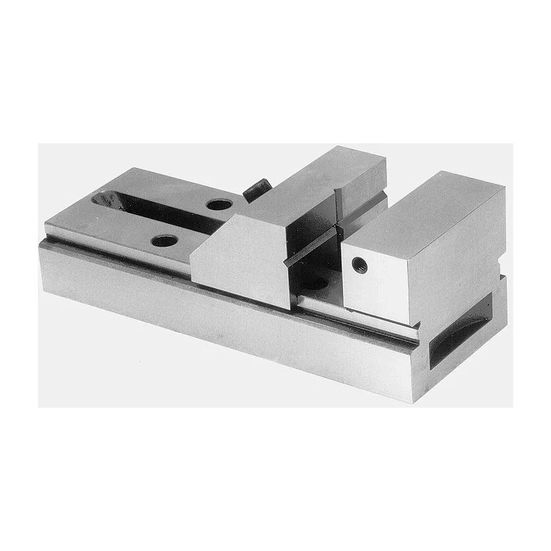Angled channel provides extra jaw capacity. Jaw can be opened or closed without unbolting from work surface. Squareness and parallelism
