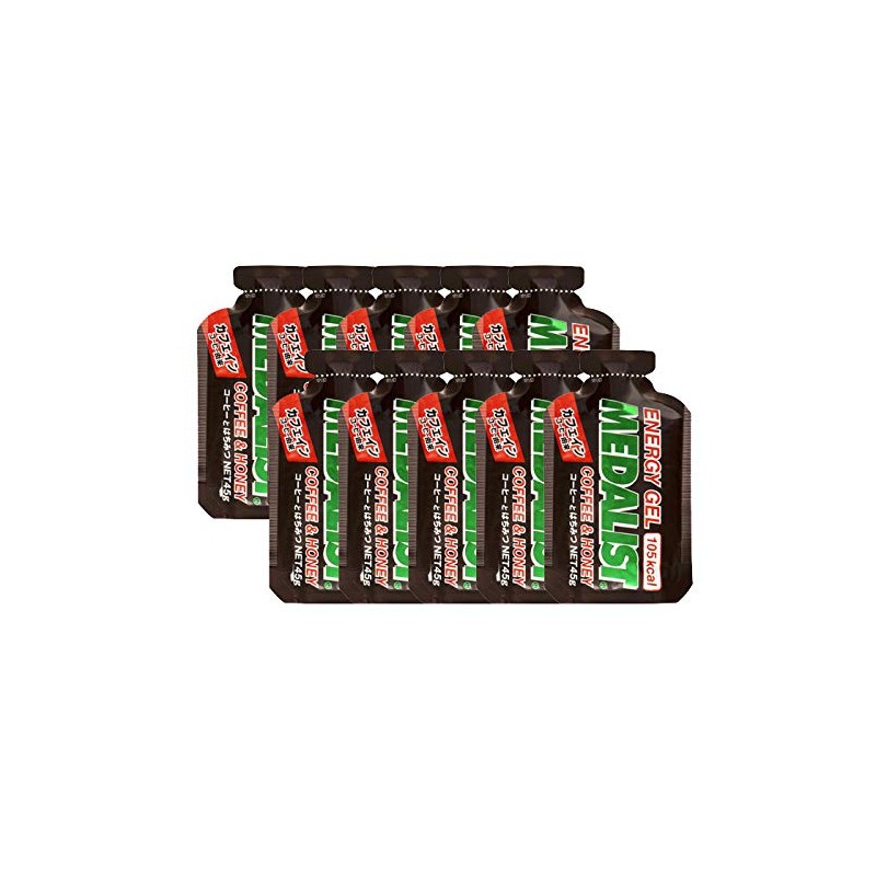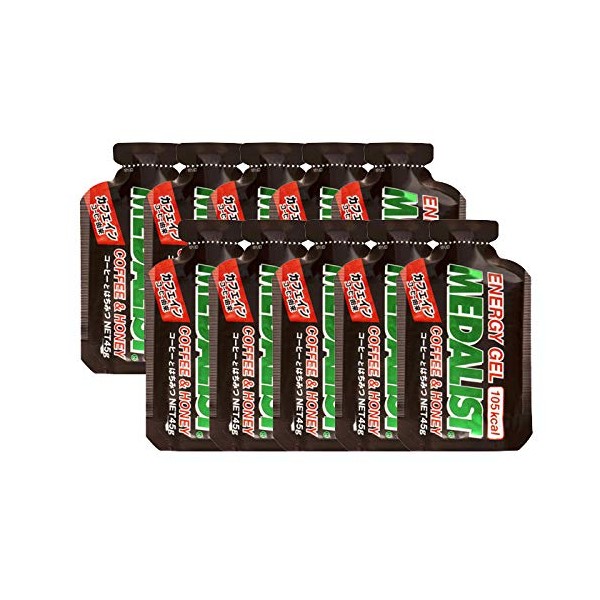 - ? Energy gel with coffee extract, honey, and fructose primarily ingredients? Sweetness is low and delicious, with 105 kcal (45 g) of energy. A slightly stiff jelly type that gives you the satisfaction of chew? Thin pouch for easy portability and large knob for easy opening. 50 mg of caffeine derived from coffee