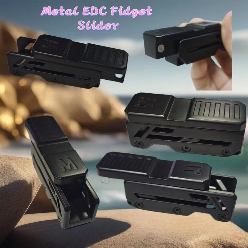 MEDC Push Slider Toy for Adults , Zinc Alloy Metal Stress Relief Slider , Portable EDC Pocket Toy ,Black