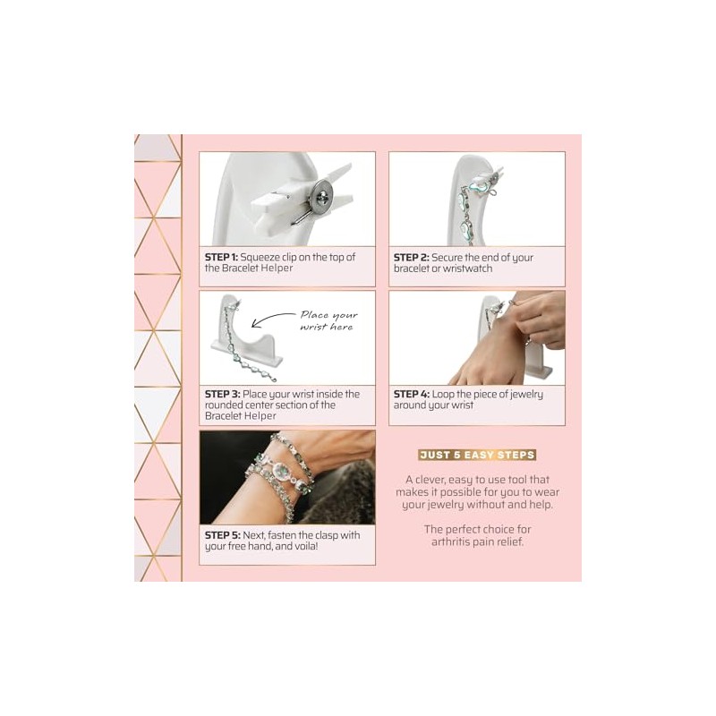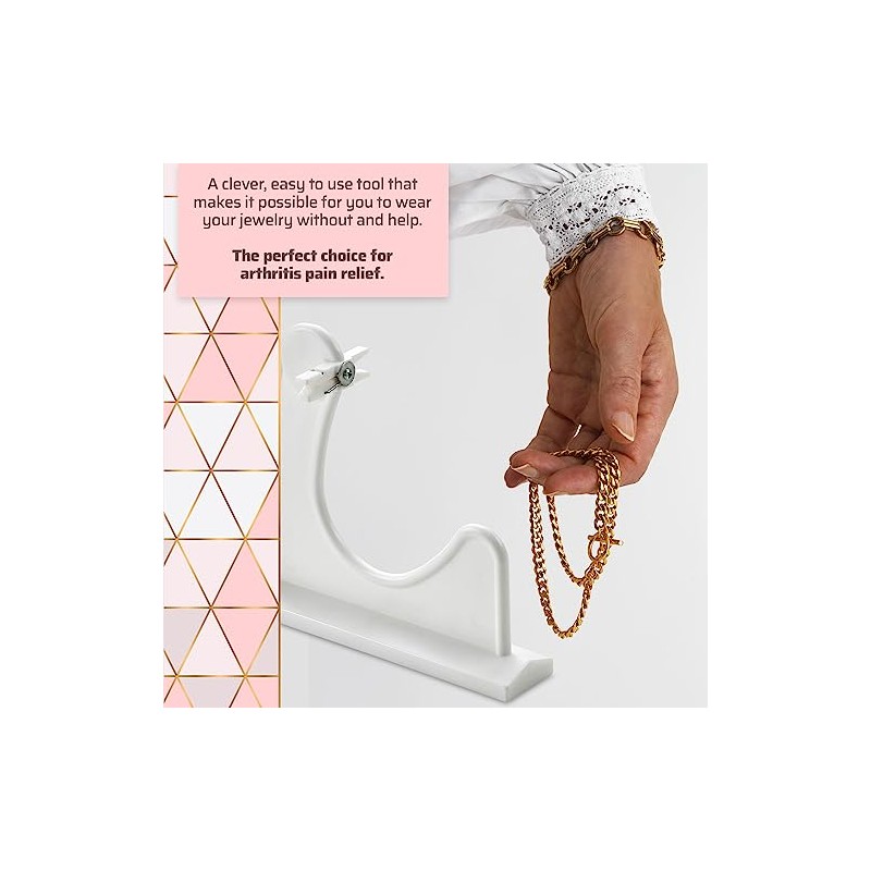 - Ponte tus joyas favoritas sin esfuerzo, en cualquier momento y en cualquier lugar: ¿Luchas con cierres de pulsera? Conoce la herramienta de ayuda definitiva para pulseras, diseñada para hacer que usar joyas sea muy fácil. Ya sea una delicada pulsera, bisutería o incluso un reloj, este ingenioso dispositivo te permite sujetarlos todos por ti mismo en cuestión de segundos. No más frustración, solo pura elegancia fácil.