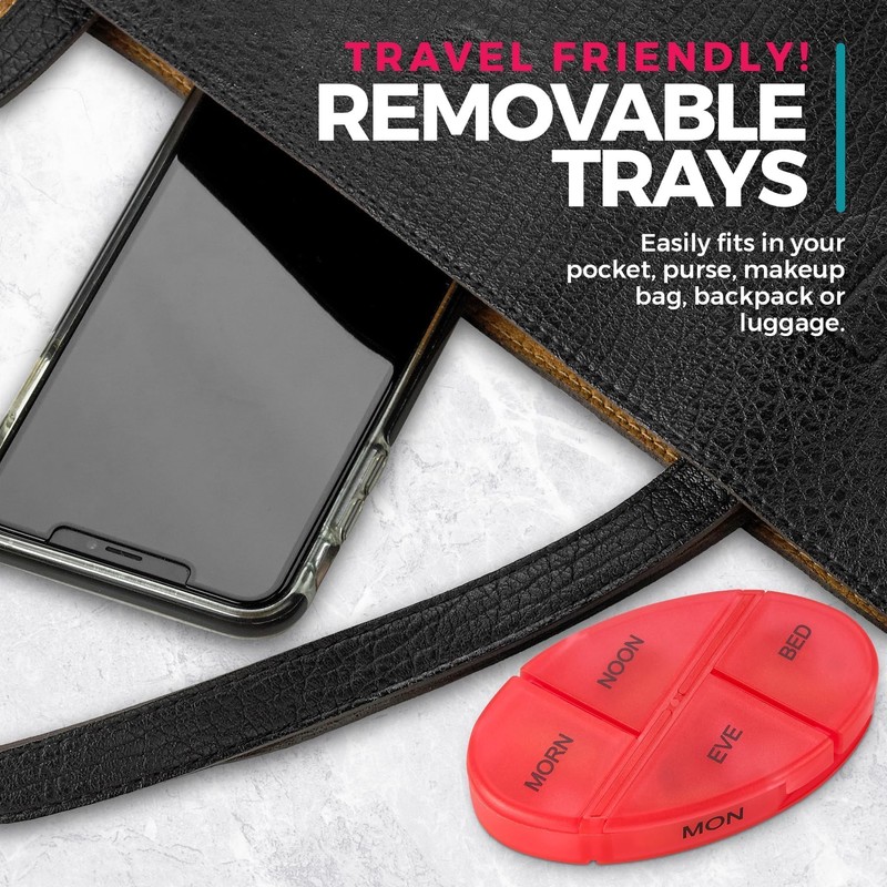 - CONVENIENT & DURABLE CONSTRUCTION Our pill dispenser box is made of sturdy and highly durable plastic, guaranteed to last a lifetime. With removable tray and lid, it is extremely easy to load and unload your medication.