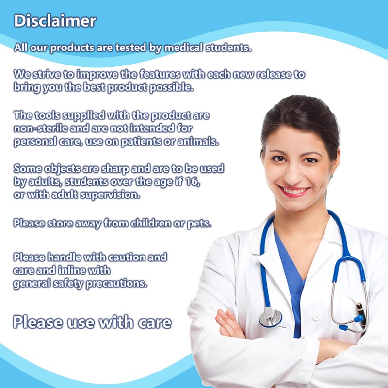 - ✔️ 5 stainless training kits are fully meet the suture skill training requests for any medical or veterinary students, including needle driver x 1, mosquito forceps x 1, iris scissors x 1, andson tweezer x 1, scalpel handle x 1, scalpe blades x 3. Also it is great for educational demonstration and examination.