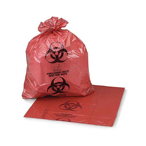 Medegen 45-50 Biohazardous Waste Bag, Red/Black, 1.25 mil Gauge, 8 Gallon-10 Gallon Capacity, 24" Width, 24" Length, Pack of 250
