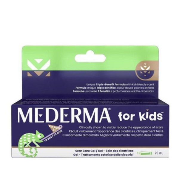 Children's gel for the treatment and aesthetic care of scars, a product that provides a visible improvement in their appearance, ideal for a visible reduction of scars caused by accidents, surgeries, wounds or burns.