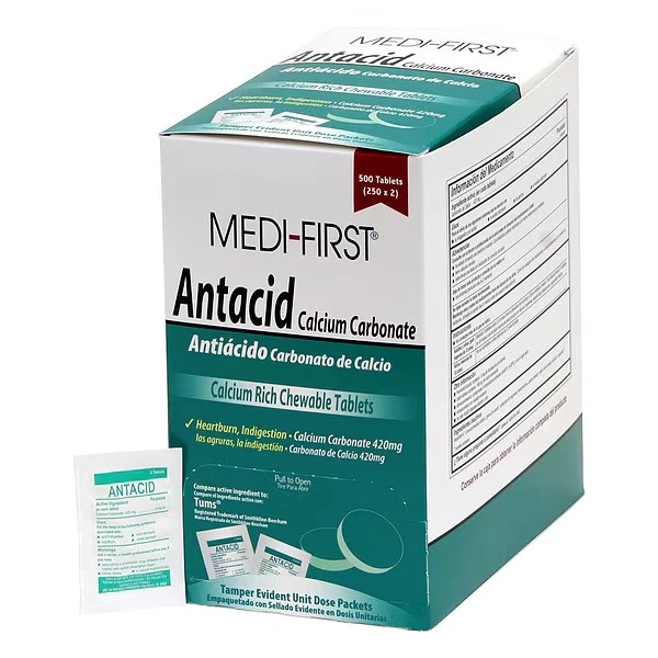 Medi-First 500PK Medi-First Chewable Mint Antacid and Indigestion – Relief for Stomach Ache