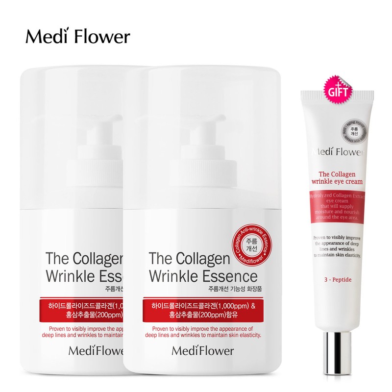 Medi Flower Collagen Wrinkle Improvement Essence 250mlx2 + The Collagen Eye Cream 40ml / 메디플라워 콜라겐 주름개선 에센스 250mlx2개+더 콜라겐 아이크림 40ml