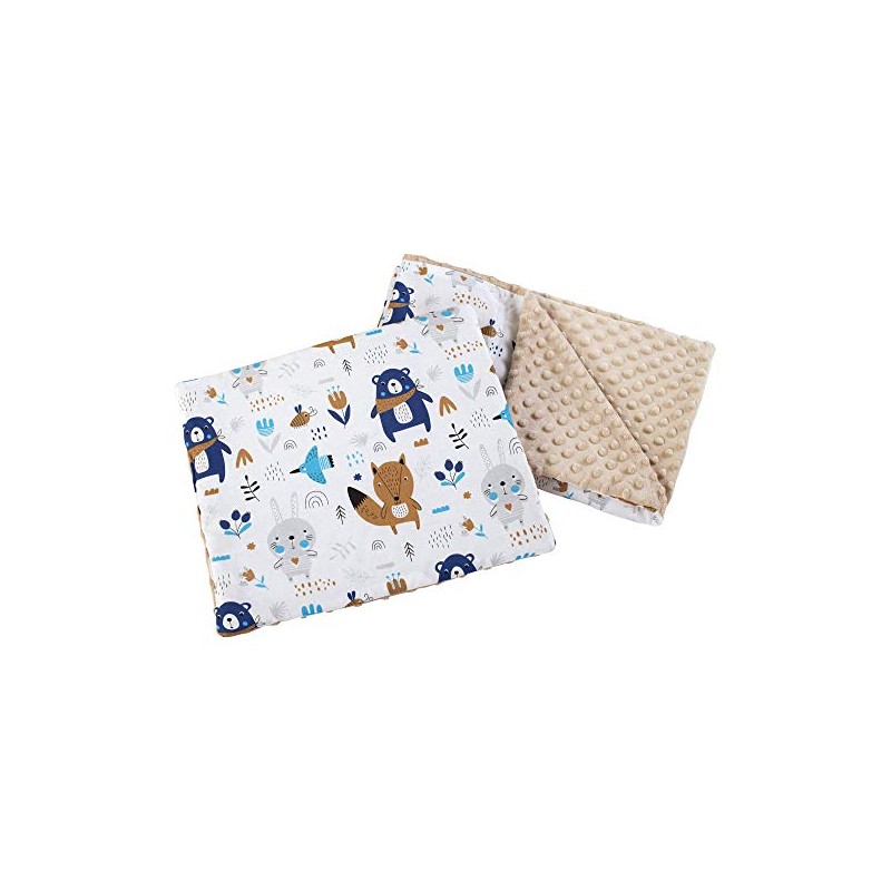 Medi Partners Baby Blanket Crawling Blanket with Cushion 100% Cotton Minky Children's Blanket 55 x 75 + 35 x 30 cm Multifunctional for Pushchairs Baby Seat Cradle (Animals in the Forest with Beige