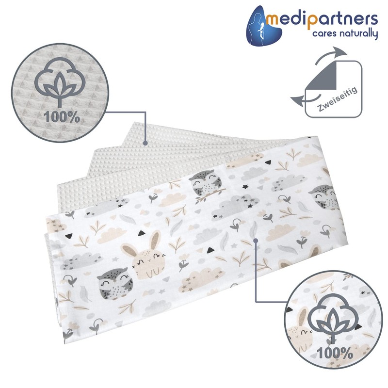 Medi Partners Crawling Blanket for Baby 100% Cotton Waffle 75 x 100 cm Thin without Filling Double-Sided Multifunctional Cuddly Blanket Soft Delicate