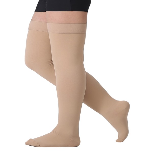 Medias de compresión TOFLY Thigh de alta compresión, opacas, firme apoyo 20 – 30 mmHg, compresión degradada con banda de silicona, medias de compresión de dedos cerrados, tratamiento de hinchazón, varicosa, Edema.