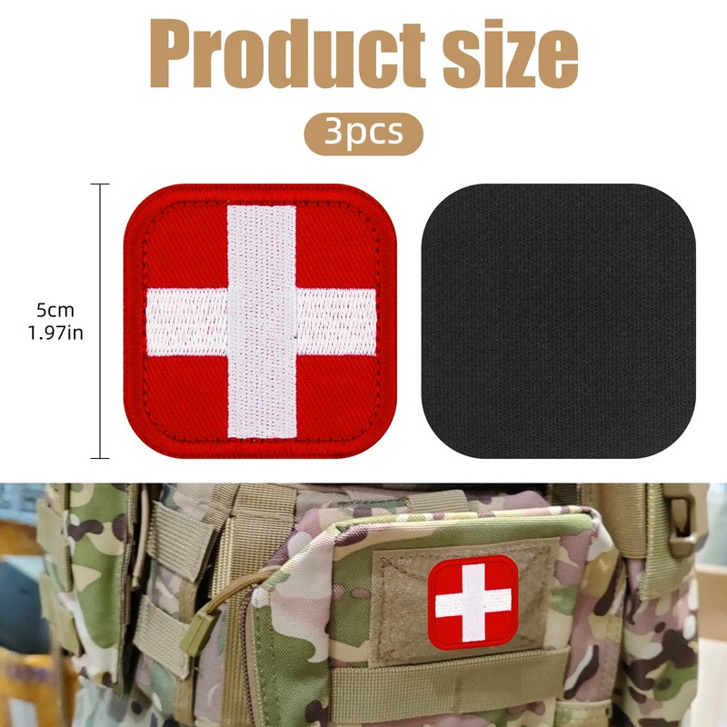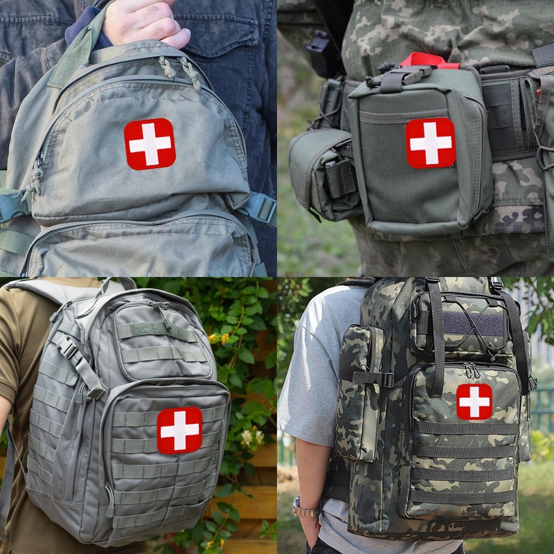 - Widely used: First aid Patch tactical hook and loop Patches & red back white cross medical patch are very suitable for carrying medical equipment during outdoor activities such as travel and camping, such as first aid kits, backpacks, car supplies, etc. Medic Red Cross patches are also very suitable for use in personal first aid kits, tourniquets, bandages, surgical kits, casualty kits, earthquake kits, tactical operation hats, hats, jackets, uniforms, armbands, and decals