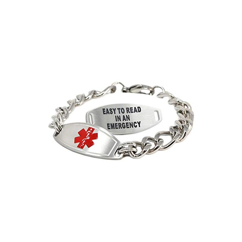 Medical Alert Bracelet for Men with Free Engraving, Thick Stainless Steel Personalized Medic ID Custom Sized 1cm Chain - Red | Made in USA - Wrist Size 8 inch
