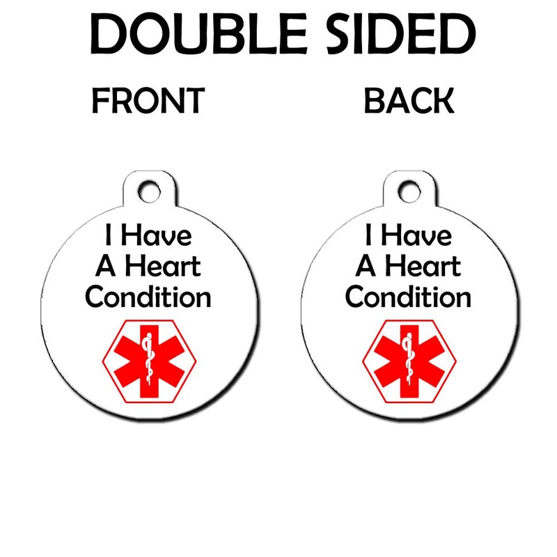 Medical Alert Dog Cat Pet ID Tag - I Have a Heart Condition - Double Sided (White, Large (1.25" Diameter))