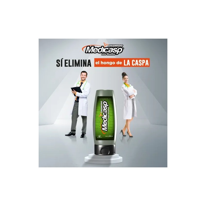 Medicasp Shampoo es un tratamiento dermatológico formulado con Ketoconazol al 2%, un agente antimicótico altamente efectivo para combatir la caspa severa, la dermatitis seborreica y la descamación del cuero cabelludo. Su fórmula actúa desde el primer uso, controlando hongos, reduciendo el enrojecimiento, la irritación y el exceso de grasa.