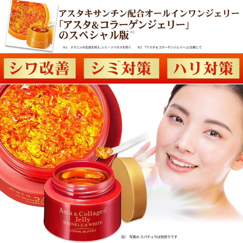 - Cosmetics Buffet, Medicinal Asta & Collagen Jelly, Astaxanthin, Niacinamid, Quasi Drug, All-in-One Cosmetic, 7-in-1 Makeup, Moisturizing, Aging Care, Wrinkle, Whitening, Memory Shape Jelly, Country of Origin: Japan Volume: 1.8 oz (50 g)