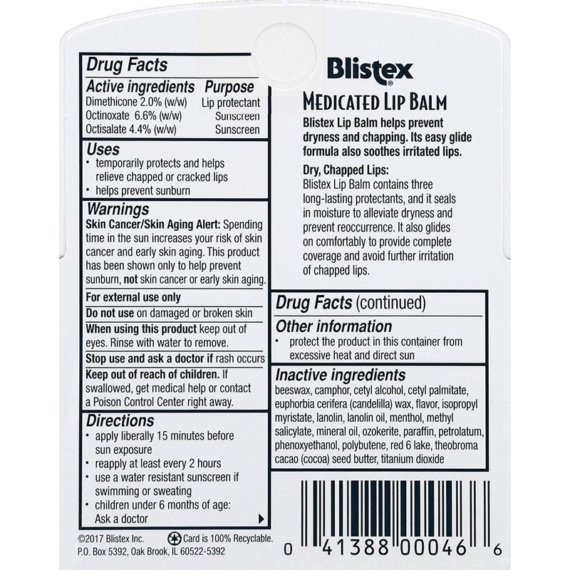 - Blistex Medicated Lip Balm Value 3-pack, three 0.15 oz tubes (Pack of 3)