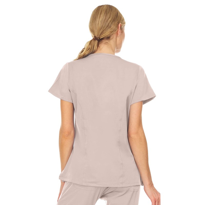 MediChic Mini Marilyn Scrubs V-Neck Three Pocket Scrub Top with 4-Way Stretch, Available in Over 20 Colors Khaki