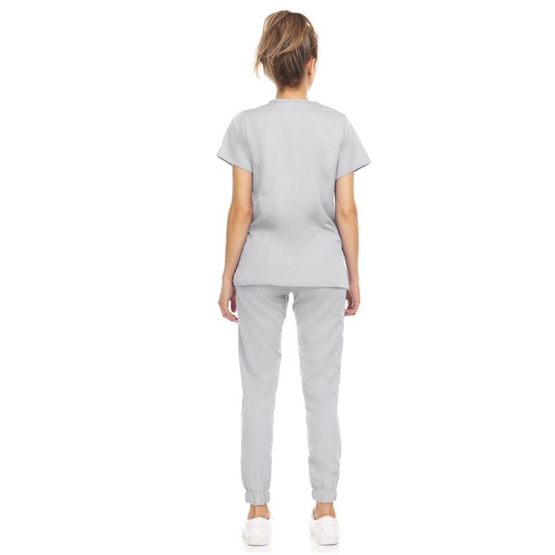 - TWO PIECE SET: Manufactured in 4-way stretch fabric, these scrub tops contain three methodical pockets and side slits for ultimate freedom, and the joggers contain three pockets and a cargo.