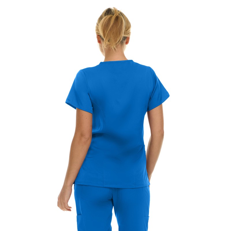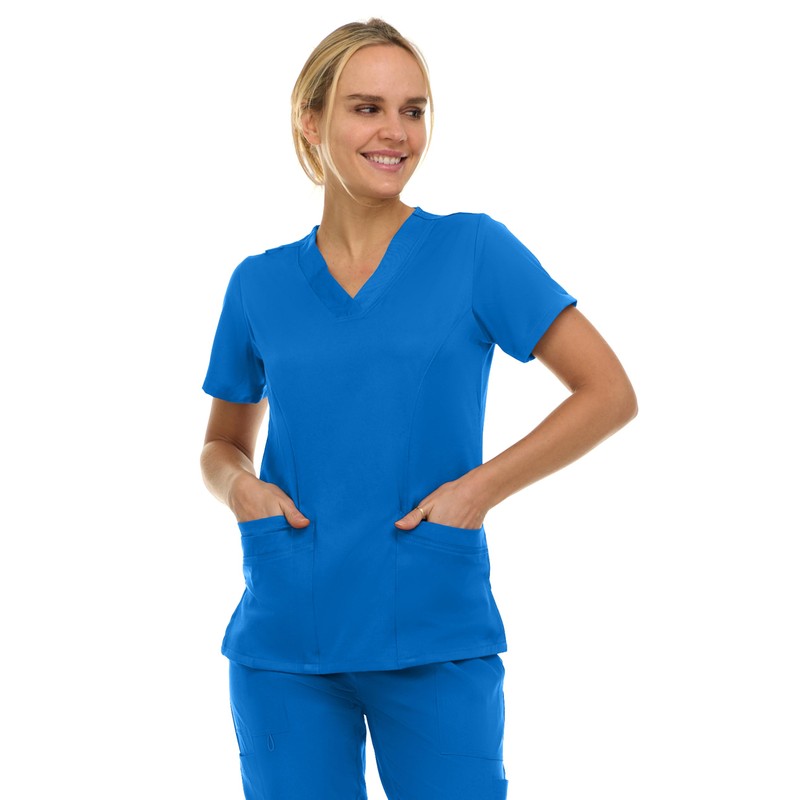 MediChic Women's V-Neck Scrub Top - 3-Pocket, 4-Way Stretch, Comfortable Medical Uniform, Royal Small