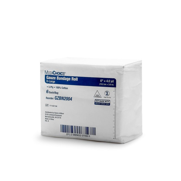 MediChoice Gauze Roll Bandage, 3-Ply, Non-Sterile, 6 Inch x 4 Yards, White, 1314GZBN2004 (Case of 48)