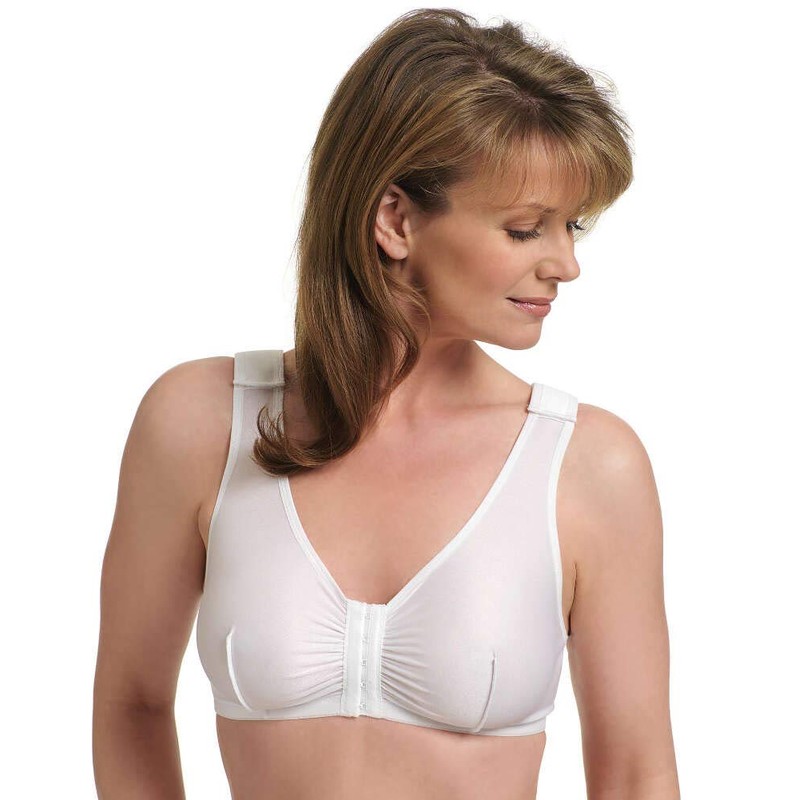 MediChoice Wireless Surgical Bra, Adjustable Strap Front Closure Post Surgery Mastectomy Compression Everyday Support Bra, Size 38, White